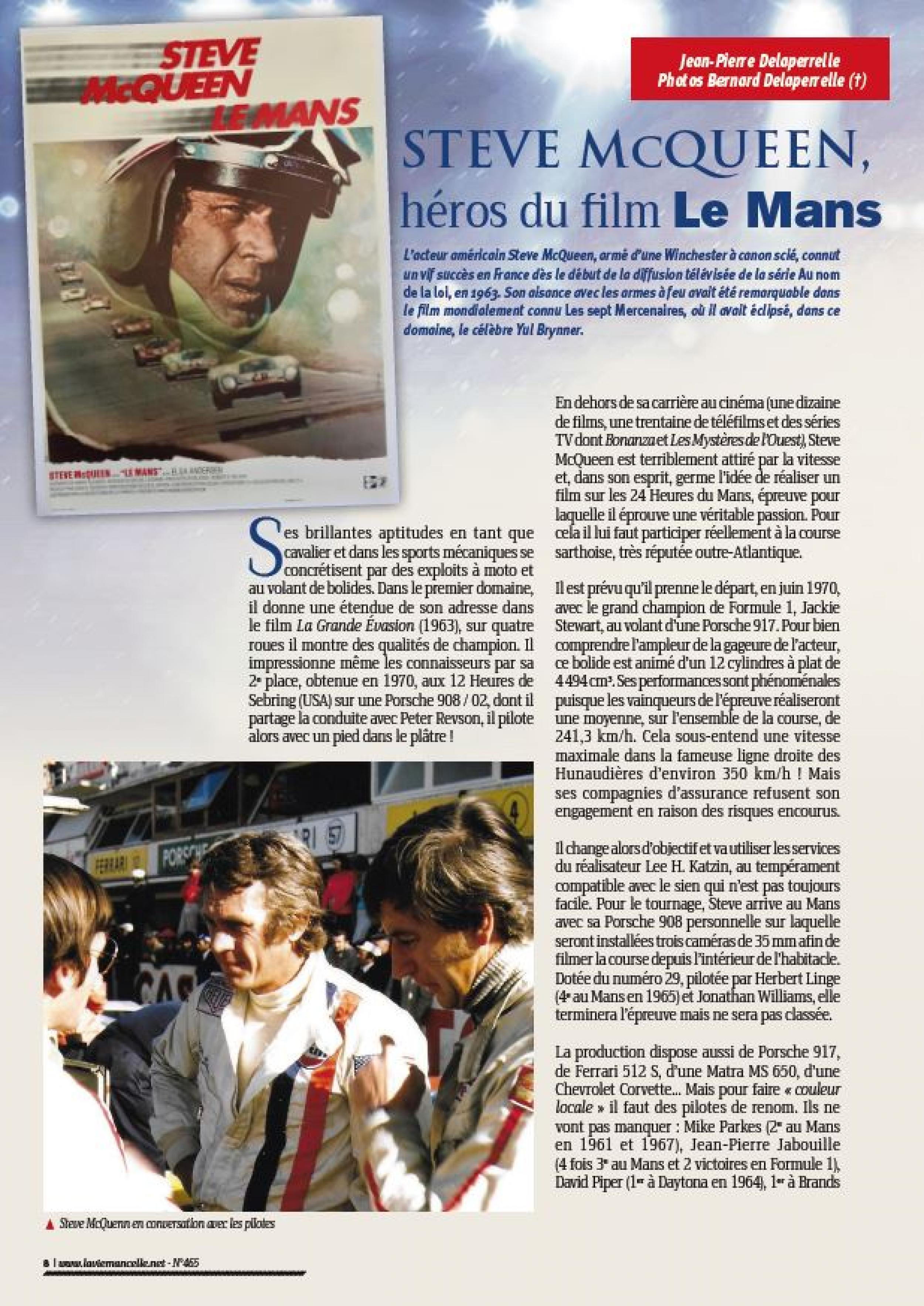 Présentation de la revue, présentation du numéro 465 : Dossier sur La Porsche 917, Steve Mc Queen, Le Bidon de 5 litres à La Ferté-Bernard, Sauverzac et Béroul photographes, Au Mans, 90 ans d’atelier de photographie, Le manoir de Verdigné, Avesnes-en-Saosnois, René Blasutta, sculpteur, portrait d’artiste, Renée Martine Crappier, le Choeur Résonnances, le patois Avec Jean-Pierre Guyard