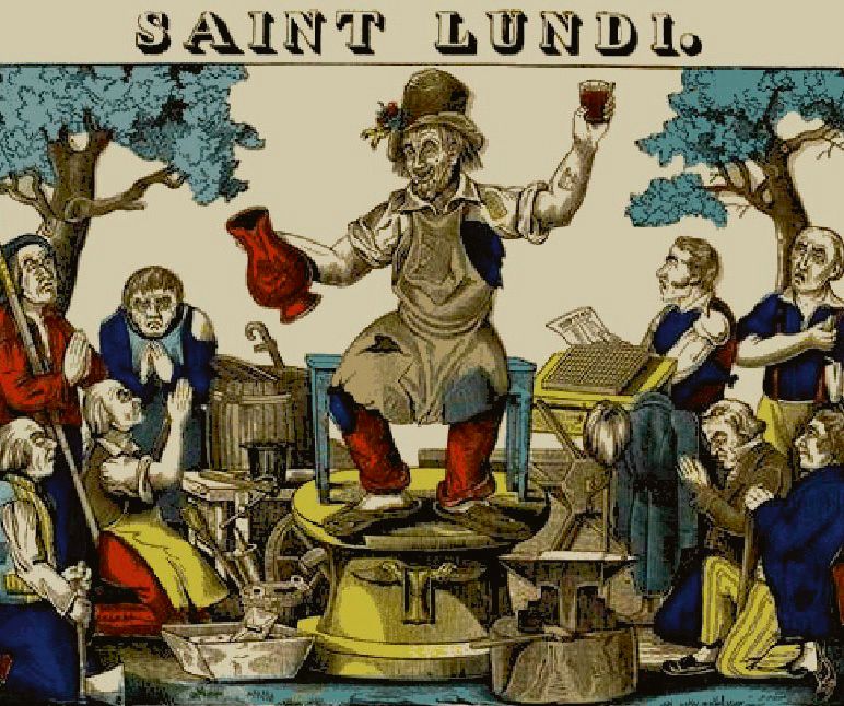 Sous la Monarchie de Juillet, Le Courrier dela Sarthe était un important journal. Dans l’édition du mardi 28 juin 1831, un certain « N. » rapporte un témoignage sur la vie d’ouvriers manceaux. La veille, il a fait irruption dans une guinguette à Pontlieue. Là, une vingtaine d’ouvriers, et sans doute autant de femmes, étaient rassemblés. Première chose étonnante, ils ne travaillaient pas. Peut-être pratiquaient-ils le « Saint-Lundi », coutume consistant à ne pas aller au travail ce jour de la semaine.